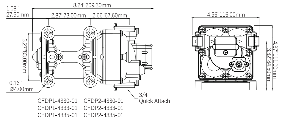 Pompe à membrane volumétrique à 4 chambres, auto-amorçante, pouvant fonctionner à sec |